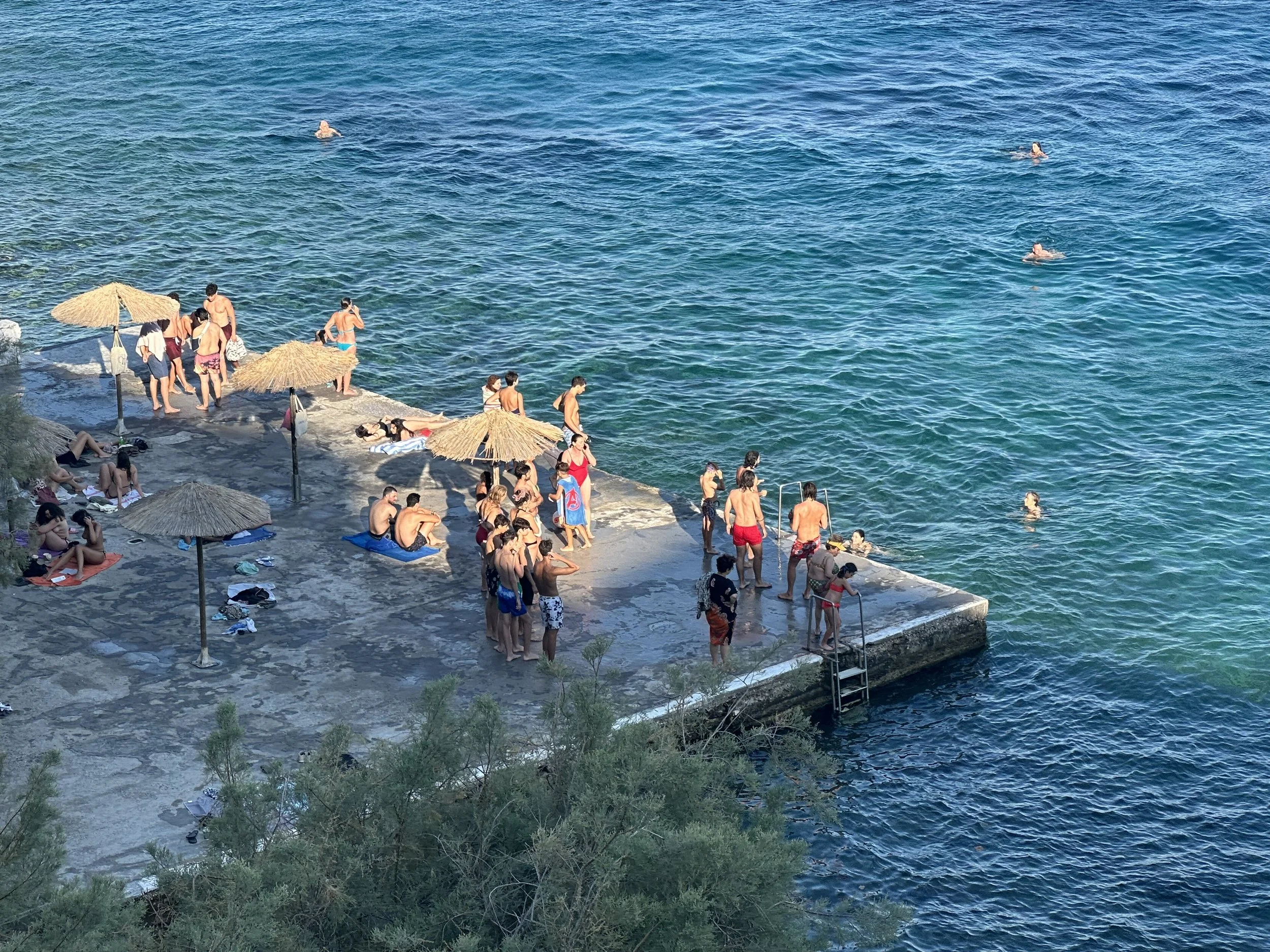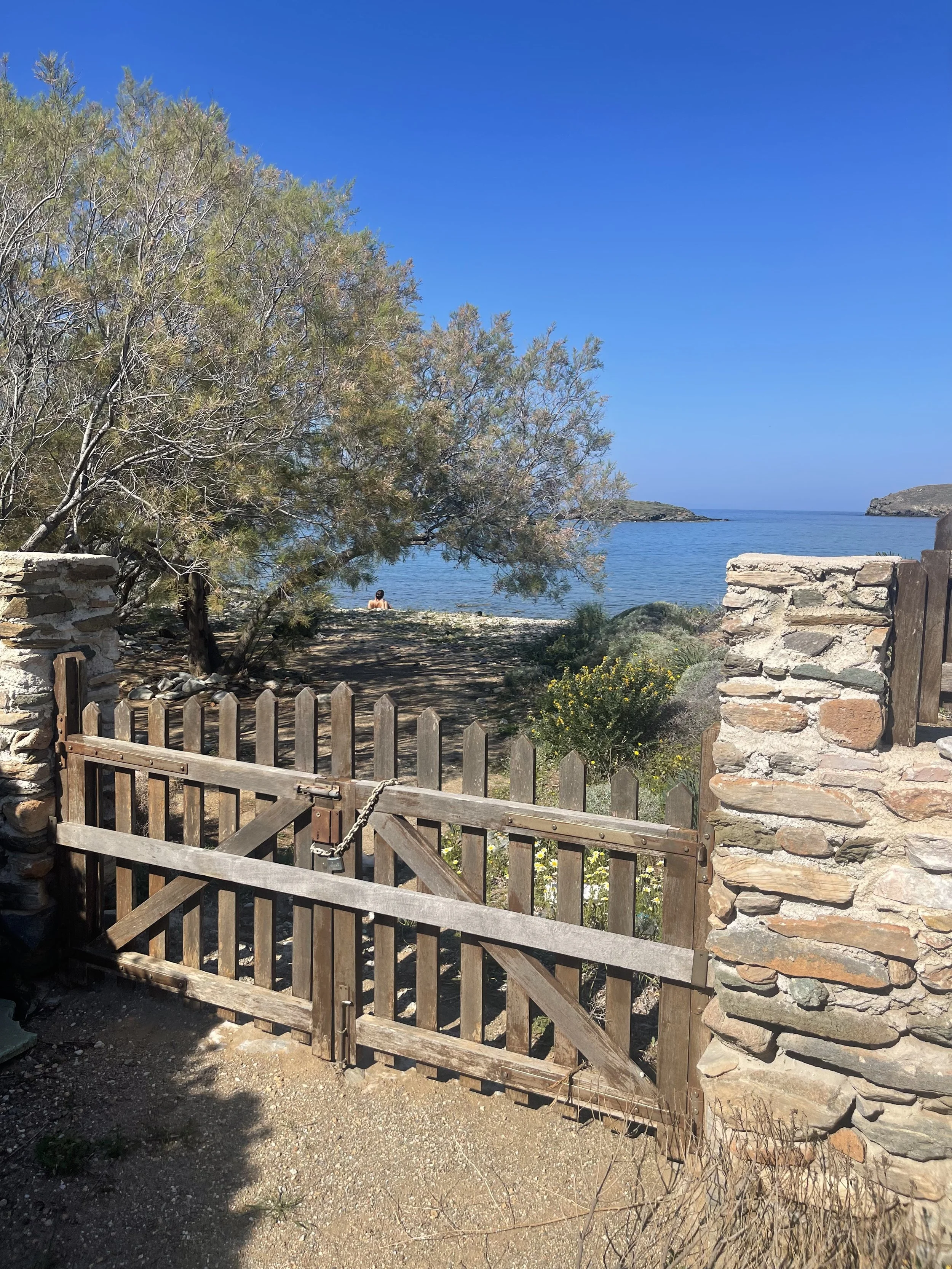 Delfini Beach takes its name from the Greek word Delfini, meaning dolphin. It is located along the northern shore of Syros away from crowds and commercial activity. The landscape is open and uncluttered with clear water and a calm spacious feel. Delfini Beach offers a relaxed respectful atmosphere, with one end near the property where bathing suits are optional for those who prefer greater privacy and freedom. A short walk of approximately 100 meters along the shore brings you to the livelier stretch of the beach where beach bars, sun beds and umbrellas are available creating an easy balance between seclusion and simple seaside